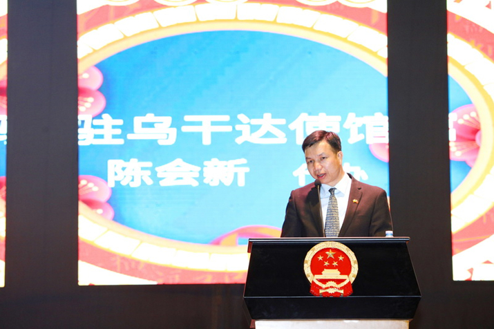 陈代办说,2019年也是中乌两国关系发展史上具有里程碑意义的一年。去年6月乌总统穆塞韦尼成功访华,习近平主席同他举行会谈,两国元首达成一系列重要共识,一致同意将两国关系提升为全面合作伙伴关系。当前,中乌政治互信不断增强,务实合作扎实推进并取得丰硕成果,两国人文交流日益深化,中乌关系进入历史最好水平。他表示,这些成就的取得离不开所有旅乌华侨华人、中资企业、孔院师生的积极参与和支持。希望旅乌华侨华人抓住国家发展和中乌关系发展的机遇,充分发挥自身优势,继续勇做中国改革开放的坚定支持者,中国和平统一的坚决推动者,中乌友好的积极促进者。