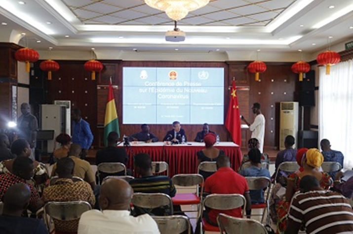 2月7日,驻几内亚大使黄巍在使馆同几卫生部秘书长孔戴和世界卫生组织驻几代表兼联合国系统驻几机构协调人吉泽博举行联合记者会,介绍抗击新型冠状病毒肺炎疫情有关情况。来自几国家电视台、国家广播电台、《自由报》、《外交官报》、新闻网等当地近30家媒体的50余名记者参加。