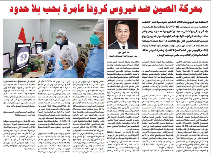 3月11日,驻苏丹大使马新民在苏丹《关注报》“中国聚焦”专栏发表题为《中国战“疫”彰显无疆大爱》的署名文章。全文如下: