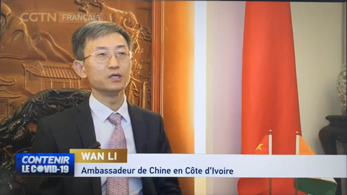 3月12日,驻科特迪瓦大使万黎接受中国国际电视台法语频道专访,就科特迪瓦出现首例新冠肺炎确诊病例、加强两国抗疫合作等发表看法。