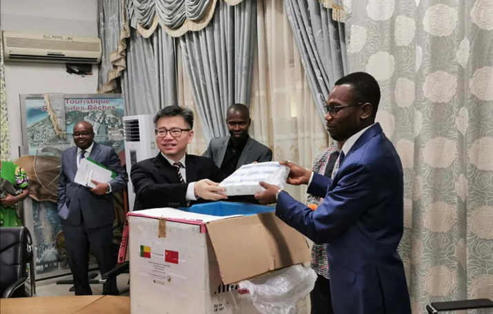3月19日,贝宁卫生部和中国驻贝宁使馆共同举办捐赠新冠病毒检测试剂移交仪式。贝宁卫生部长本杰明·温帕坦、世界卫生组织驻贝宁代表哈鲁纳·德·金加雷、联合国儿童基金会驻贝宁代表克洛德·卡门加;中国驻贝宁大使彭惊涛、经商参赞张伯辉、贝宁中资企业协会秘书长王军以及美国、法国等国驻贝宁使馆代表、主流媒体记者等50余人出席。