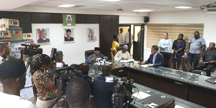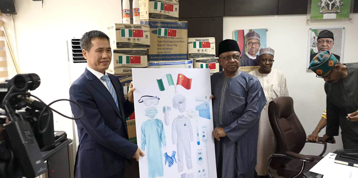 3月23日,驻尼日利亚使馆向尼日利亚卫生部捐赠一批公共卫生应急物资,支持尼政府开展新冠肺炎疫情防控工作。驻尼日利亚大使周平剑和尼卫生部部长埃哈尼尔、国务部长马默拉、常秘阿卜杜拉希等出席。