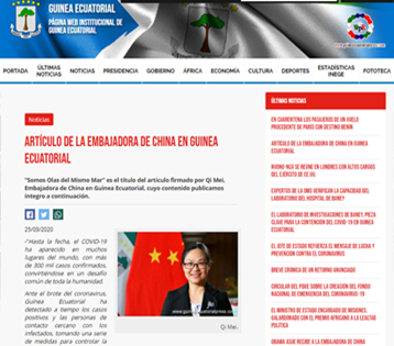 3月24日、25日,驻赤道几内亚大使亓玫分别在赤几《现在》电子新闻网、政府官网发表题为《我们都是同一海洋里的朵朵浪花》的署名文章。全文如下: