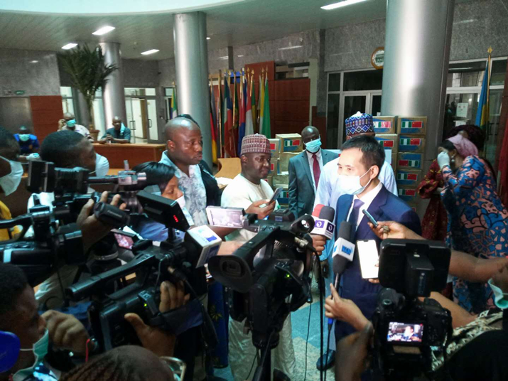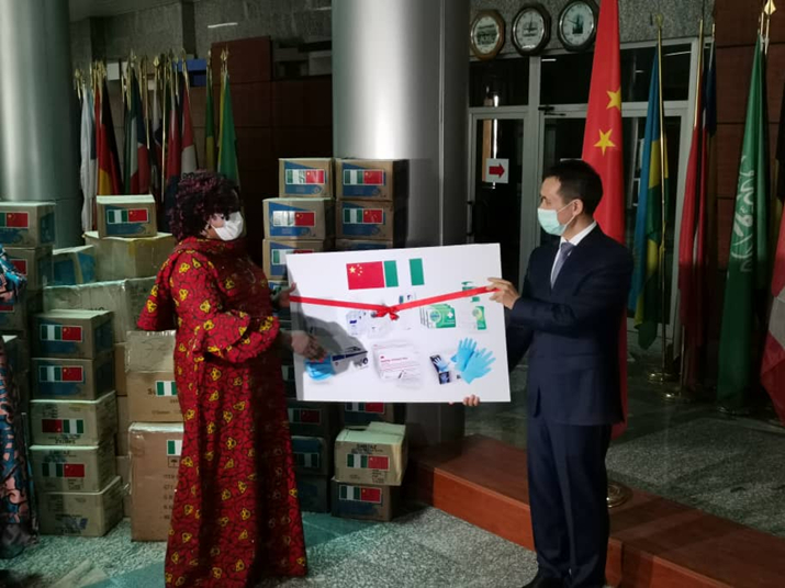 2020年3月27日,驻尼日利亚使馆向尼日利亚外交部捐赠一批口罩、红外体温计、一次性手套、洗手液、消毒水、香皂等物资用于防控新冠肺炎疫情。驻尼日利亚大使周平剑和尼外交部政策规划司司长埃戈皮贾、地区司司长瑞米、培训与职员福利司司长欧琪妮等出席活动。