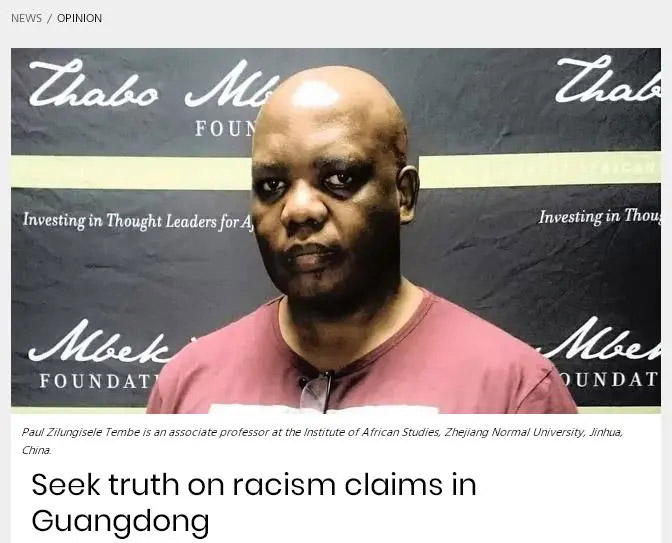 4月24日,南非跨文化交流领域专家、姆贝基非洲领导力研究院谭哲理教授在南第二大新闻网站刊文,以“寻找所谓广东‘种族主义’指责的真相”为题,呼吁非洲国家不要被不实信息所蒙蔽,而应客观、理性看待广东采取的防疫举措和非洲人在粤境况。主要内容如下: