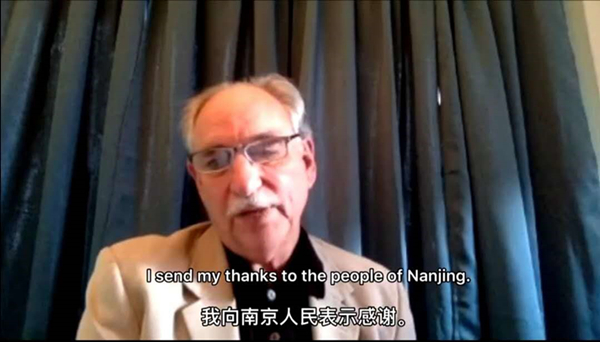 国际和平城市协会会长弗雷德·阿门特向南京人民表示感谢。
