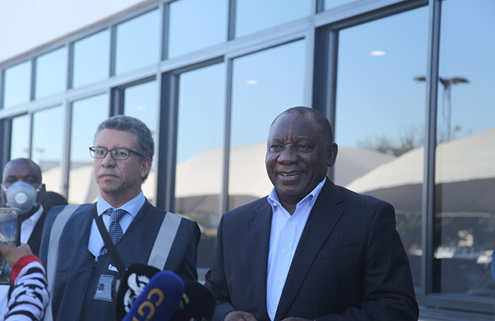 李南临时代办与拉马福萨总统共同出席南非企业从中国采购抗疫物资运抵交接仪式