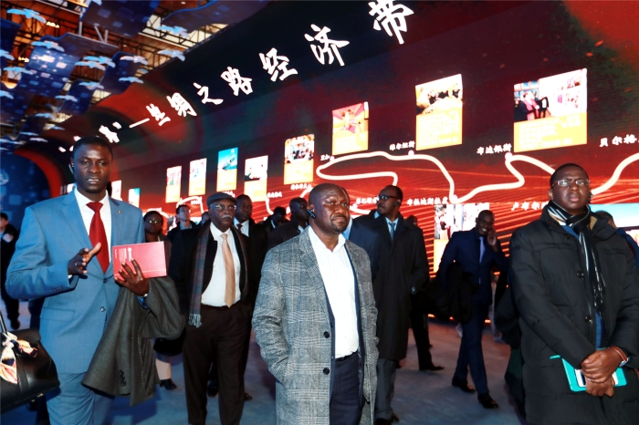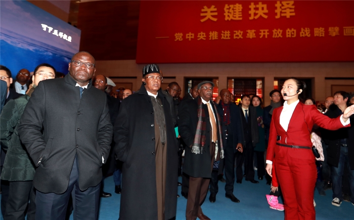 1月16日,非洲使团成员在参观“伟大的变革——庆祝改革开放40周年大型展览”。 (新华社记者 潘旭摄)
