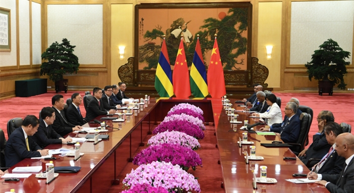 习近平指出,一个多月前,我成功访问毛里求斯,深切感受到中毛友好深入人心,前景广阔。双方要充分发挥高层交往的政治引领作用,加强沟通交流,继续在涉及彼此核心利益和重大关切问题上相互理解、相互支持,进一步提升政治互信,积极开展互利合作。中方将继续支持毛里求斯在国际和地区事务中发挥积极作用,支持小岛屿国家落实好联合国2030年可持续发展议程。