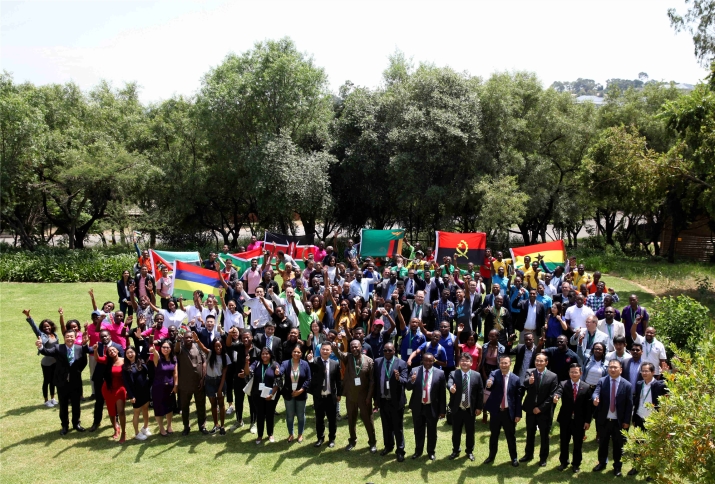 华为撒哈拉以南非洲ICT技能大赛颁奖仪式结束后,与会人员在南非华为办公园区合影。 (中国与非洲记者李建国 摄)