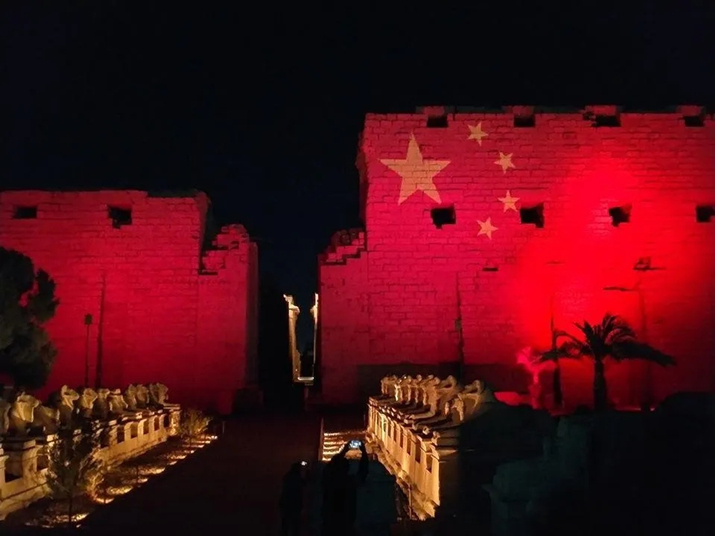 当地时间3月1日晚7点30分,埃及卫生与人口部长哈莱根据塞西总统指示,作为总统特使访华,在哈莱起程访华的同时,埃及三大世界文化遗产开罗萨拉丁城堡、卢克索卡尔纳克神庙、阿斯旺菲莱神庙通过灯光秀的方式打出鲜艳的五星红旗。