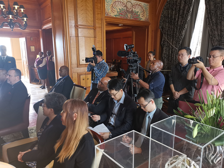 林大使首先代表中国政府和人民积极评价和由衷感谢南非太阳城集团慷慨捐赠的善举,指出此次捐赠的不仅是资金,更是兄弟情谊和团结力量,是对中国政府和人民赢得这场疫情防控阻击战的坚定支持和强大信心。
