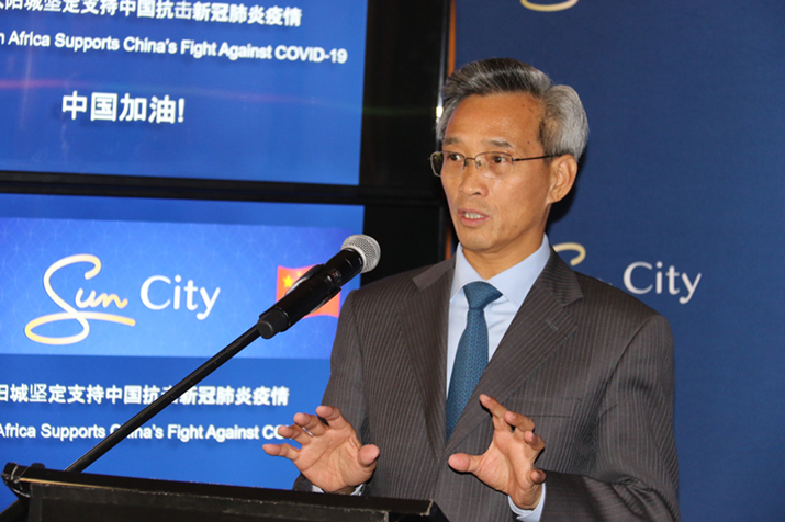 林大使首先代表中国政府和人民积极评价和由衷感谢南非太阳城集团慷慨捐赠的善举,指出此次捐赠的不仅是资金,更是兄弟情谊和团结力量,是对中国政府和人民赢得这场疫情防控阻击战的坚定支持和强大信心。
