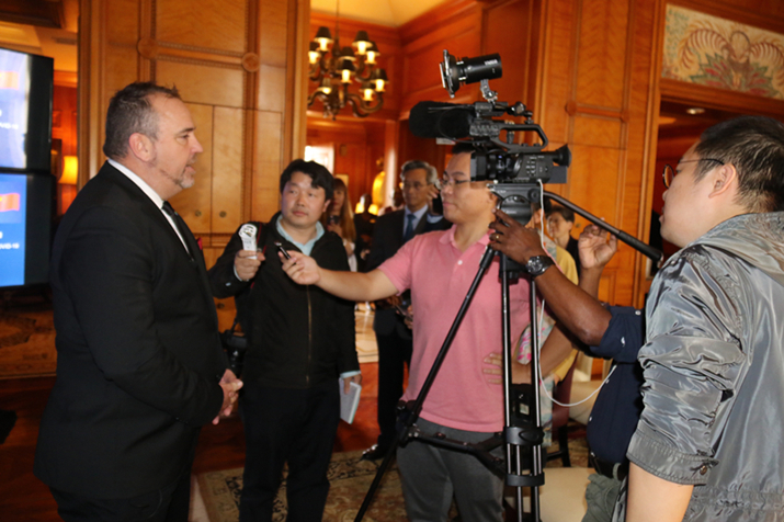 仪式上,霍普总经理向林大使转交了捐赠支票,并接受了媒体采访,盛赞南中友好和中国抗击疫情壮举。