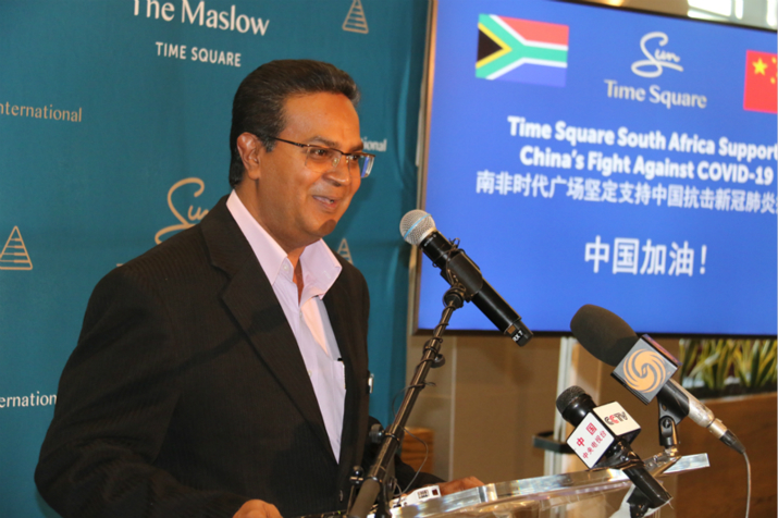 古拉纳总经理说,当前新冠肺炎疫情在中国肆虐并向世界蔓延,我们对不幸罹难的中国人民及其亲人表示最沉痛哀悼和慰问。为坚定支持中国政府和人民早日战胜疫情,我代表时代广场向中方捐赠5万兰特,为支持中国抗疫尽绵薄之力。希望世界各国能尽快研制出疫苗和有效药物,共同携手战胜疫情。