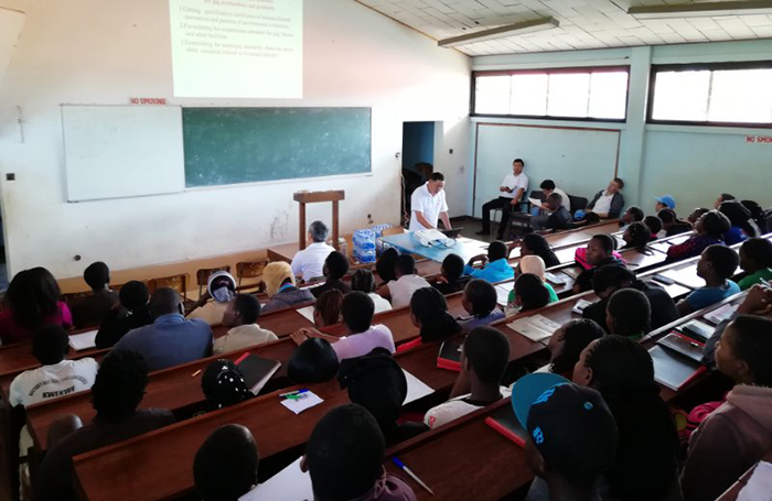 “技术培训和示范是有效措施。”在津巴布韦土地、农业、水资源、文化和农村重新安置部的协调配合下,张世洪带领专家组在当地8所农业学院展开技术培训,并深入到田间地头为当地农户进行现场示范。截至目前,专家组就畜牧兽医、玉米水稻种植、蔬菜水果种植以及农机灌溉等多个领域展开培训,参与人数共计2056人次。项目时间尚未过半,专家组培训人数已远超原定900人次的培训计划。