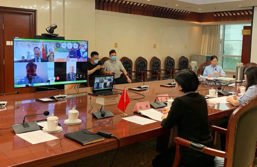 教育部国际合作与交流司刘锦司长主持抗疫经验视频交流会议(中国驻南非大使馆提供)