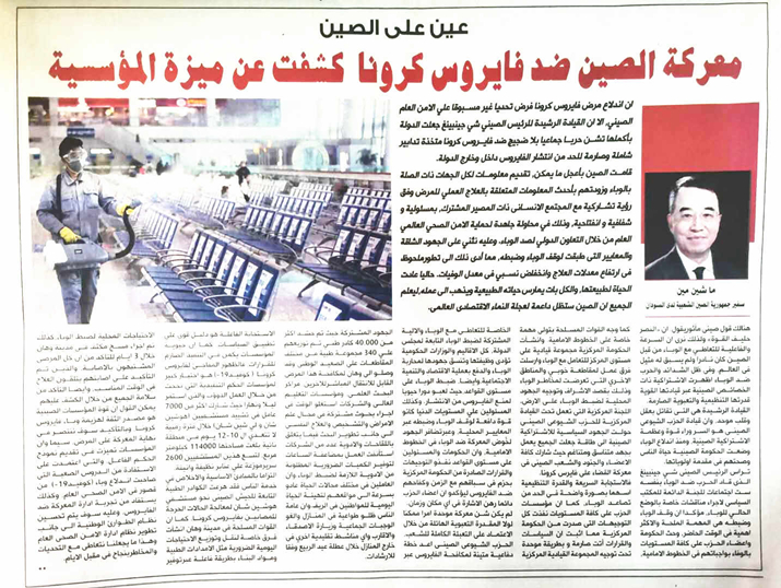 3月16日,驻苏丹大使马新民在苏《关注报》“中国聚焦”专栏发表题为《中国战“疫”彰显制度优势》的署名文章。