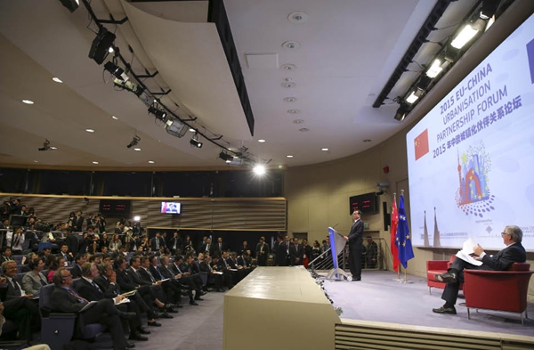 国务院总理李克强于2015年6月29日在布鲁塞尔出席2015中欧城镇化伙伴关系论坛并致辞