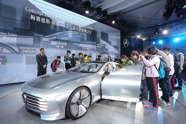 除了拉近与消费者的距离之外,研发是另一个看不见的“战场”。在2016年上海第二届亚洲消费电子展亮相的奔驰IAA空气动力智能概念车,不仅指引了未来的设计方向,更标志着未来汽车工业数字化、智能化的全新开始。