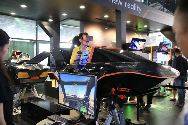 2016年5月11日,“2016年亚洲消费电子展”在上海举行,观众在体验虚拟飞船驾驶