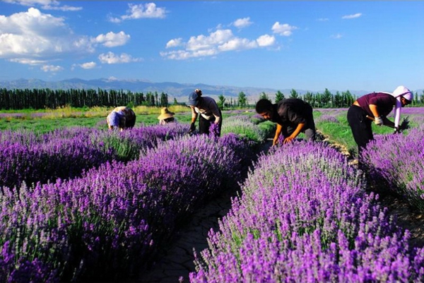 种植户在收割薰衣草
