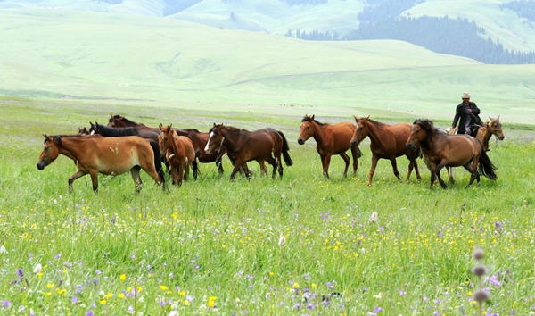盛夏的新疆伊犁草原,水草丰沛,骏马奔腾。在有着“中国天马之乡”美誉的伊犁昭苏县,正是农牧民育马、养马、驯马、赛马,发展马产业的大好时节。