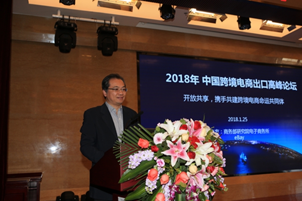 2018年1月25日,由商务部国际贸易经济合作研究院电子商务研究所与亿贝(eBay)共同主办的“中国跨境电商出口高峰论坛”在京举行。本届论坛以“开放共享,携手共建跨境电商命运共同体”为主题,围绕跨境电商出口创新和融合发展,就扩大国际市场份额、扩展外贸营销网络、转变外贸发展方式、促进跨境电商发展,提升治理能力等议题展开探讨。工信部原副部长杨学山、国家发改委产业经济与技术经济研究所副所长姜长云和国务院发展研究中心创新发展研究部副部长田杰棠分别在会上作主题发言。来自地方商务厅、跨境电商协会、跨境电商综合试验区、学术研究机构与企业的近200 位嘉宾出席论坛。