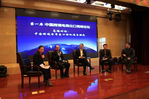 中国跨境电商出口高峰论坛高端对话。左一为商务部研究院电子商务研究所所长张莉