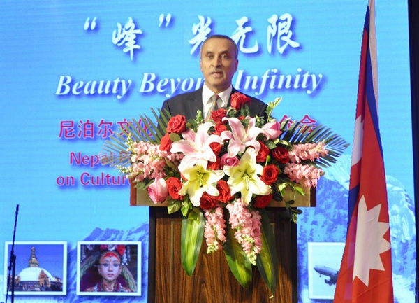 尼泊尔驻华大使利拉·马尼·鲍德尔在活动现场发言