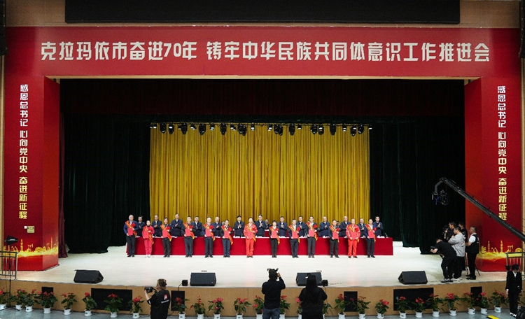 马学良指出,70年前的今天,克拉玛依一号井喷出滚滚油流,宣告了新中国第一个大油田的诞生,彻底终结了西方关于“中国贫油”的断言,为共和国的工业化建设注入了强劲动力。70年来特别是新时代以来,在党中央和自治区党委的亲切关怀和坚强领导下,在全国和全疆人民的大力帮助下,全市各族人民守望相助、团结奋斗,自觉投身于改革发展稳定事业,端稳端牢能源“饭碗”,民族团结不断巩固,中华民族共同体意识深入人心,各族人民像石榴籽一样紧紧抱在一起,昂首阔步走在中国式现代化道路上。