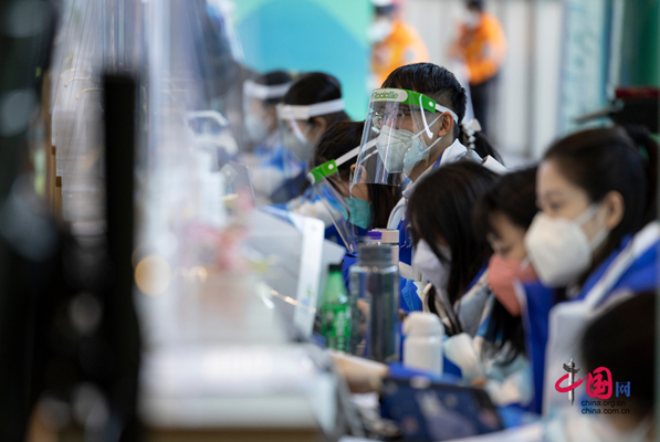 冬奥志愿者坚守在各自岗位上。人民画报社陈建 摄影
