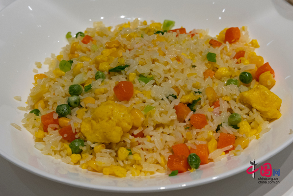 春节期间,媒体餐厅精心准备的蛋炒饭。人民画报社陈建 摄影