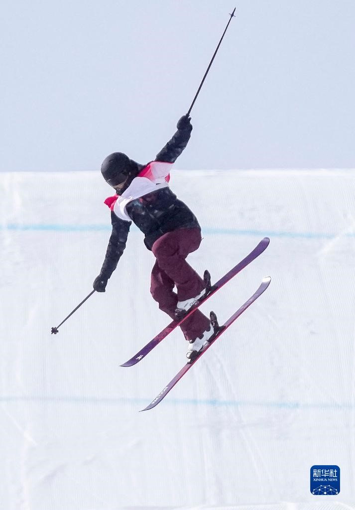2月15日,爱沙尼亚选手凯莉·西尔达鲁在北京冬奥会自由式滑雪女子坡面障碍技巧决赛中。新华社记者王昊飞摄