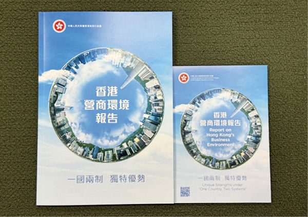 2025年7月30日,香港特区政府发布《香港营商环境报告:一国两制 独特优势》。该报告共有两个编章,包括“背靠祖国优势 联通全球商机”和“维持长期繁荣稳定 成商界安全避风港”。图为《香港营商环境报告:一国两制 独特优势》纸质文本