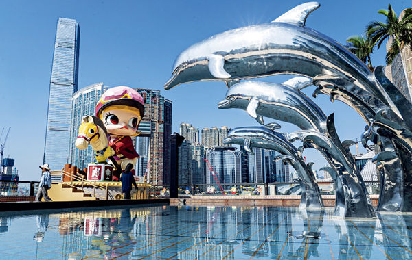 2026年2月2日, 结合马年元素的泡泡玛特代表性IP“MOLLY”雕像矗立在香港中港城平台花园