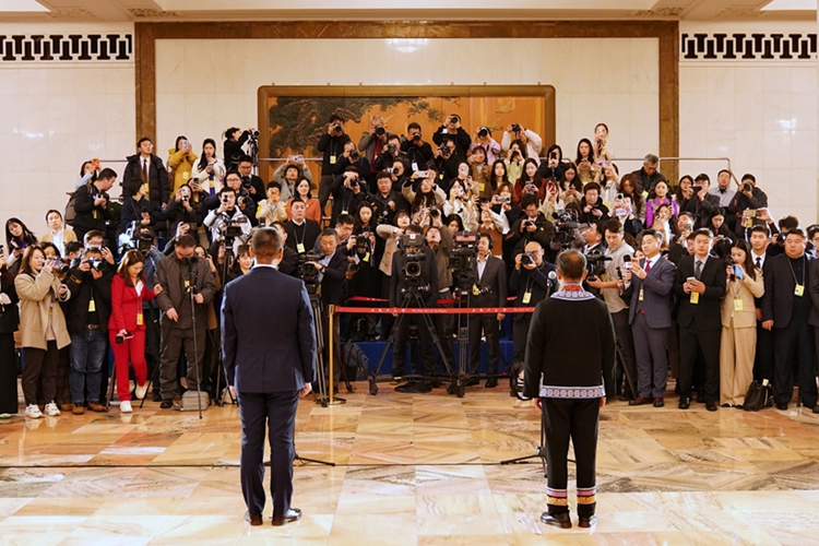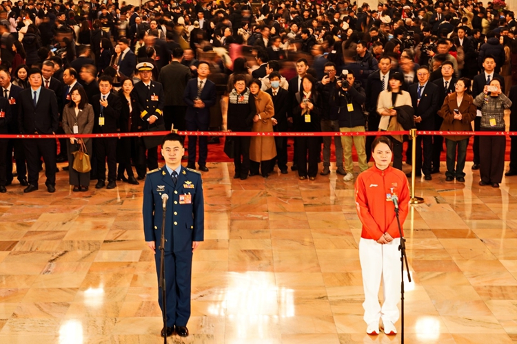 2026年3月5日8时,在人民大会堂中央大厅北侧举行十四届全国人大四次会议首场“代表通道”集中采访活动,邀请全国人大代表,中国一汽研发总院首席技能大师杨永修;全国人大代表、北京微芯区块链与边缘计算研究院院长董进;全国人大代表,江苏里下河地区农科所研究员高德荣;全国人大代表,云南省文山州广南县莲城镇落松地小学教师农加贵;全国人大代表,江西省水上运动管理中心运动员徐诗晓;全国人大代表,空军航空兵某旅飞行员王文毅接受采访。