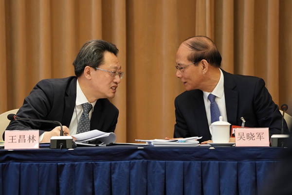 3月6日,参加十四届全国人大四次会议的青海代表团,在驻地审议政府工作报告、审查“十五五”规划纲要草案。这是第十四届全国政协提案委员会委员、国家发改委副主任王昌林和全国人大代表吴晓军交流情况
