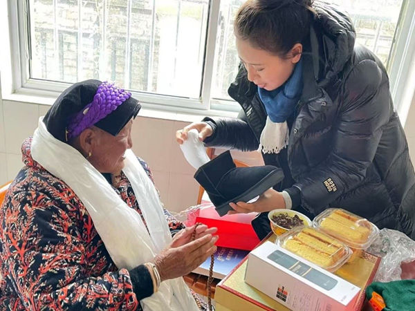 格西王姆给老人送上新衣物(图片:受访者提供)