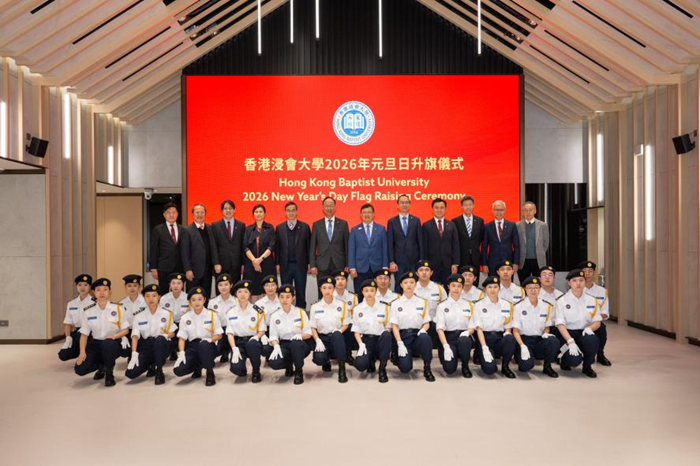 2026年1月,黄英豪(左六)参加香港浸会大学2026年元旦升旗仪式