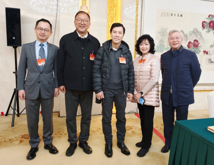 3月5日下午,全国政协十四届四次会议特邀香港人士界别小组会议在北京举行,会后,黄锦辉(左二)与一同参会的全国政协委员合影留念