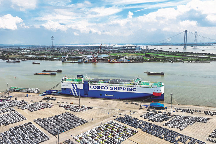 2025年5月15日,中国最大光伏能源汽车运输船“远海口”轮在广州南沙首航。该船搭载约4000台来自比亚迪、奇瑞、吉利等中国品牌的车辆,其中九成以上为新能源汽车,驶向突尼斯等共建“一带一路”国家