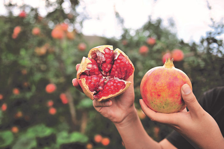 2025年9月4日,云南大理宾川县,农户展示引进的突尼斯软籽石榴