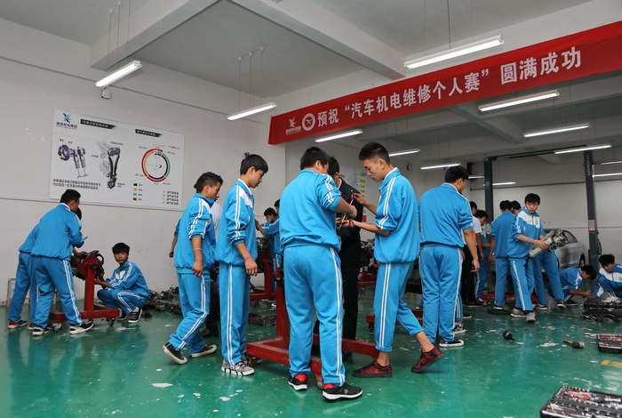 在这所中等职业学校里,张孟贤不但要完成语文、数学、英语和普通话等的基础课程学习,还要完成理论和实践课程在内的汽修专业课。“实践课程要求每个人都要手动操作,提高动手能力,对我们以后的工作帮助很大。”张孟贤说。