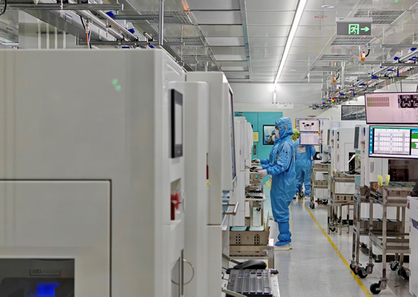 9月18日,在江苏扬州扬杰电子科技股份有限公司,工作人员在智能生产车间作业。图/本刊记者 赵飘