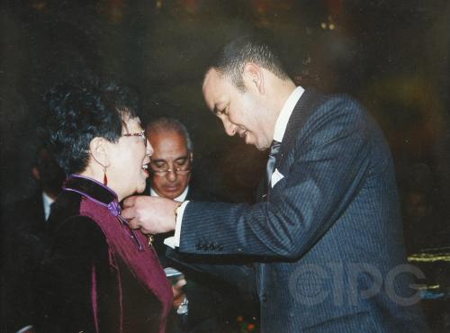 2002年,摩洛哥国王穆罕默德六世在钓鱼台亲手颁发给司徒双阿勒维王朝骑士勋章。