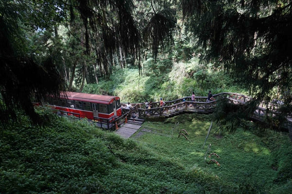 大陆游客持续减少,台湾热门景点显冷清,图为周末的阿里山风景区神木火车站