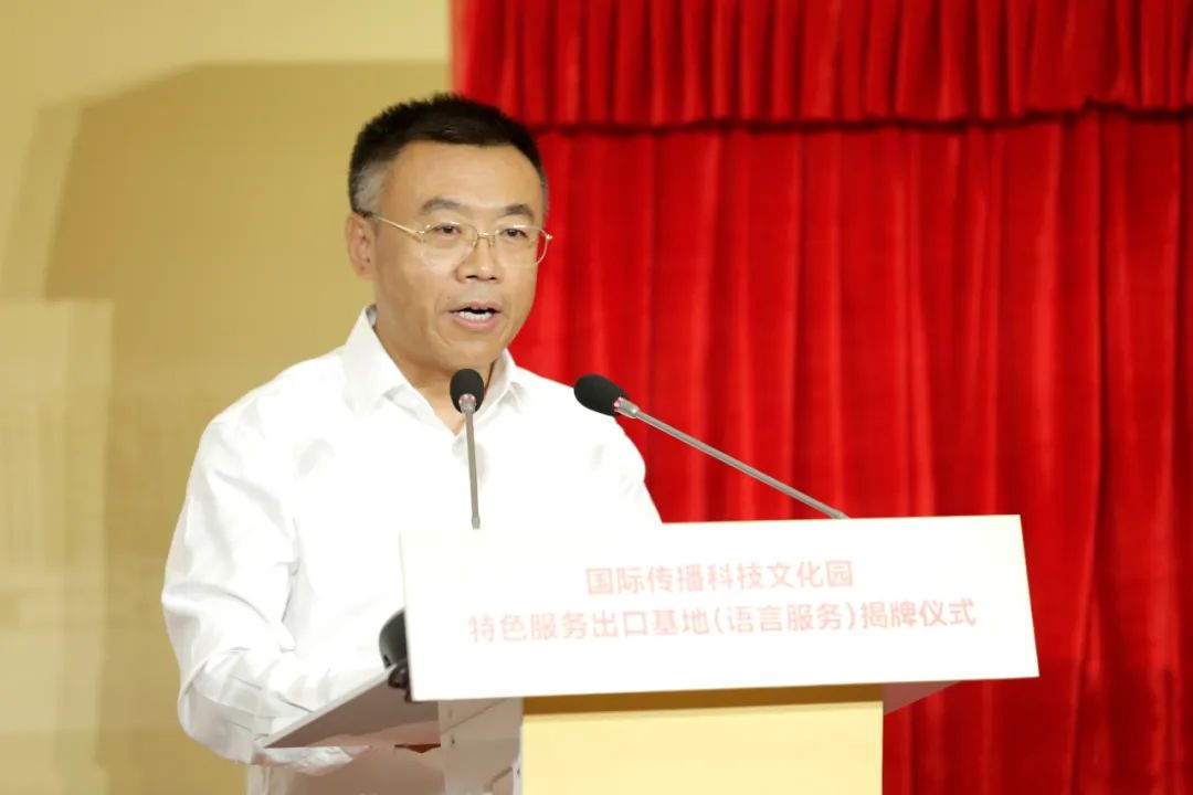 杜占元对国际传播科技文化园特色服务出口基地(语言服务)揭牌表示祝贺。他指出,中国外文局作为对外文化贸易工作联系机制的成员单位,既有参与宏观管理的责任,也是重要的支持和落办单位,承担着指导与建设的双重责任。此次国际传播科技文化园获批国家首批特色服务出口基地(语言服务),是外文局进一步落实习近平总书记贺信和回信精神的具体举措,体现了国际传播科技文化园在国际传播、科技、文化交流特别是对外文化贸易中的重要定位和使命,擘画出外文局未来产业发展的新方向,将成为国际传播事业的战略支撑和新增长点。