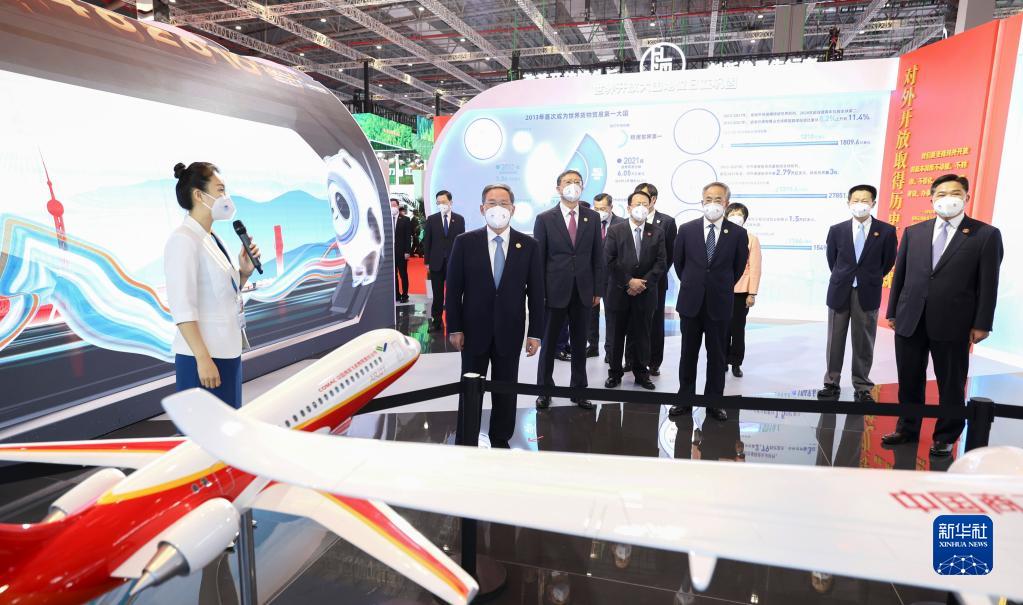 开幕式前,李强前往上海国家会展中心展览厅巡视企业展,并同重点参展企业负责人集体合影。