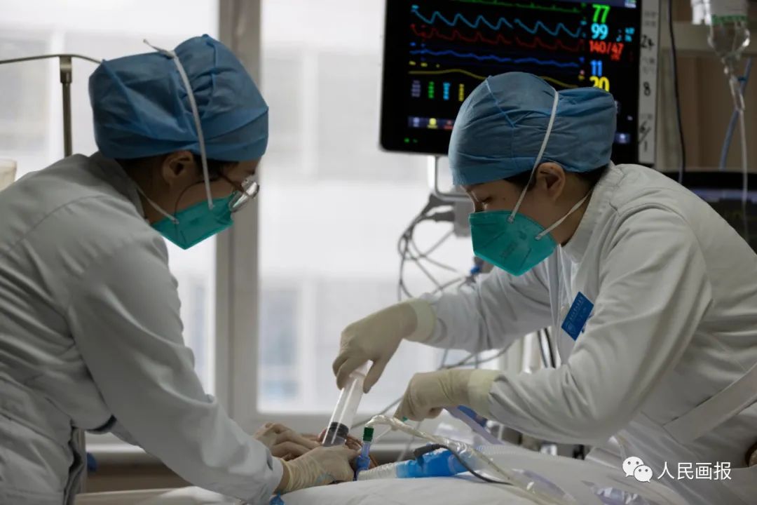 北京大学人民医院呼吸与危重症医学科重症监护室,护士在患者床边查看仪器情况。
